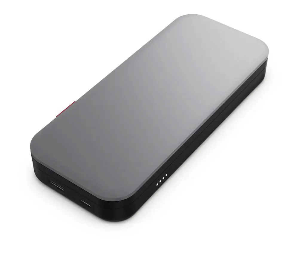 Lenovo Go USB-C Laptop Power Bank (20000 mAh) to przełomowe rozwiązanie dla pracowników zdalnych, którzy potrzebują dostępu do dużego zapasu energii dla swoich laptopów i urządzeń USB-C, aby osiągnąć szczytową produktywność. Dzięki ogromnej pojemności 20 000 mAh można szybko naładować wiele urządzeń, nawet podczas ładowania powerbanku.
